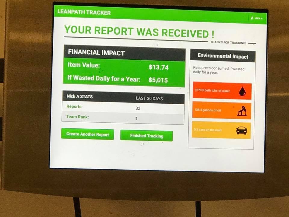 The Leanpath system also introduced opportunities to recognize staff for their efforts to track food waste. Leanpath is set up to incentivize staff for recording their waste, even if they are not immediately reducing the waste created. By tracking their waste, staff are creating opportunities to learn new techniques for food waste reduction and to understand the financial as well as environmental impacts of food waste and food waste reduction.