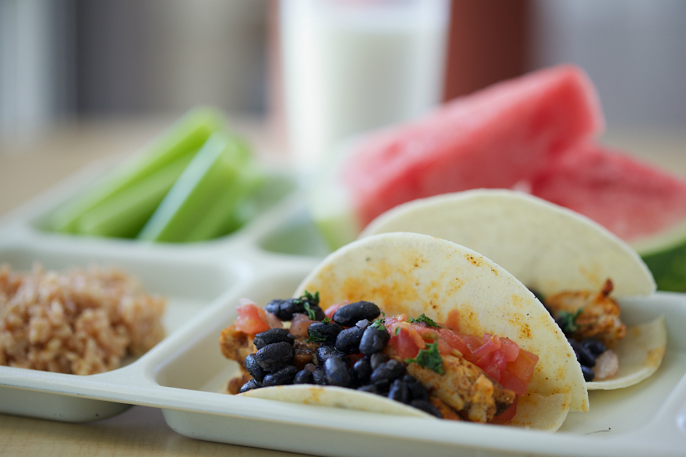 • 2 Tbsp (1 oz) black beans on top of the chicken for each taco.