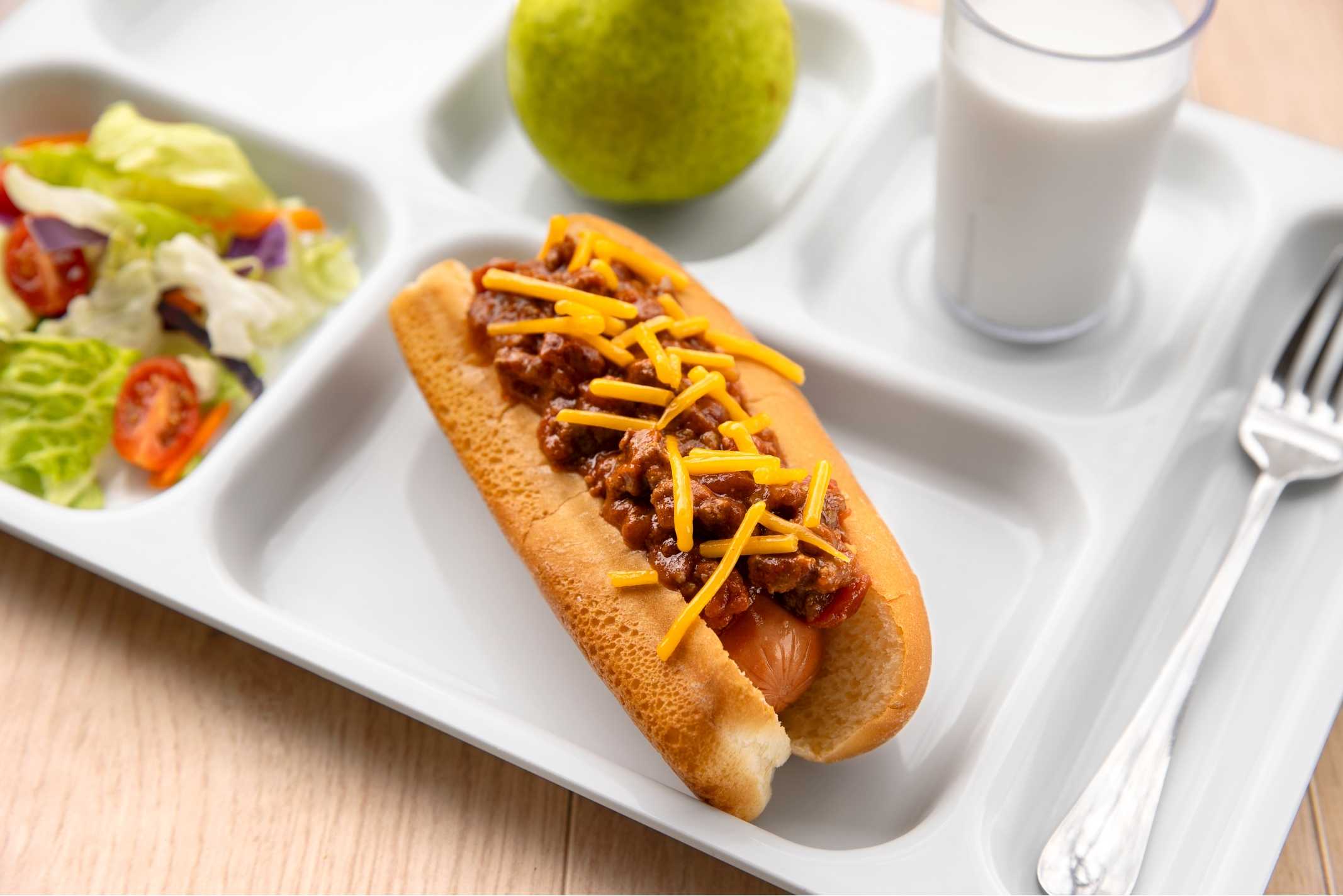 Serving size: 1 ounce of chili on 1 hot dog in a bun Optional: serve 0.25 oz of cheddar cheese on top of each chili dog *Note on Allergens: some Hot Dog Buns have Soy, please be sure to check labels and note accordingly. Recipe Source: Boulder Valley School District Food Services We recommend that any recipe selected for use in your district be tested in your kitchens before adding it to your menu. Recipe testing ensures that the methods and yields are compatible when prepared with your equipment. Since seasonings are particularly affected by scaling recipes, we highly recommend taste testing as you adjust quantities.