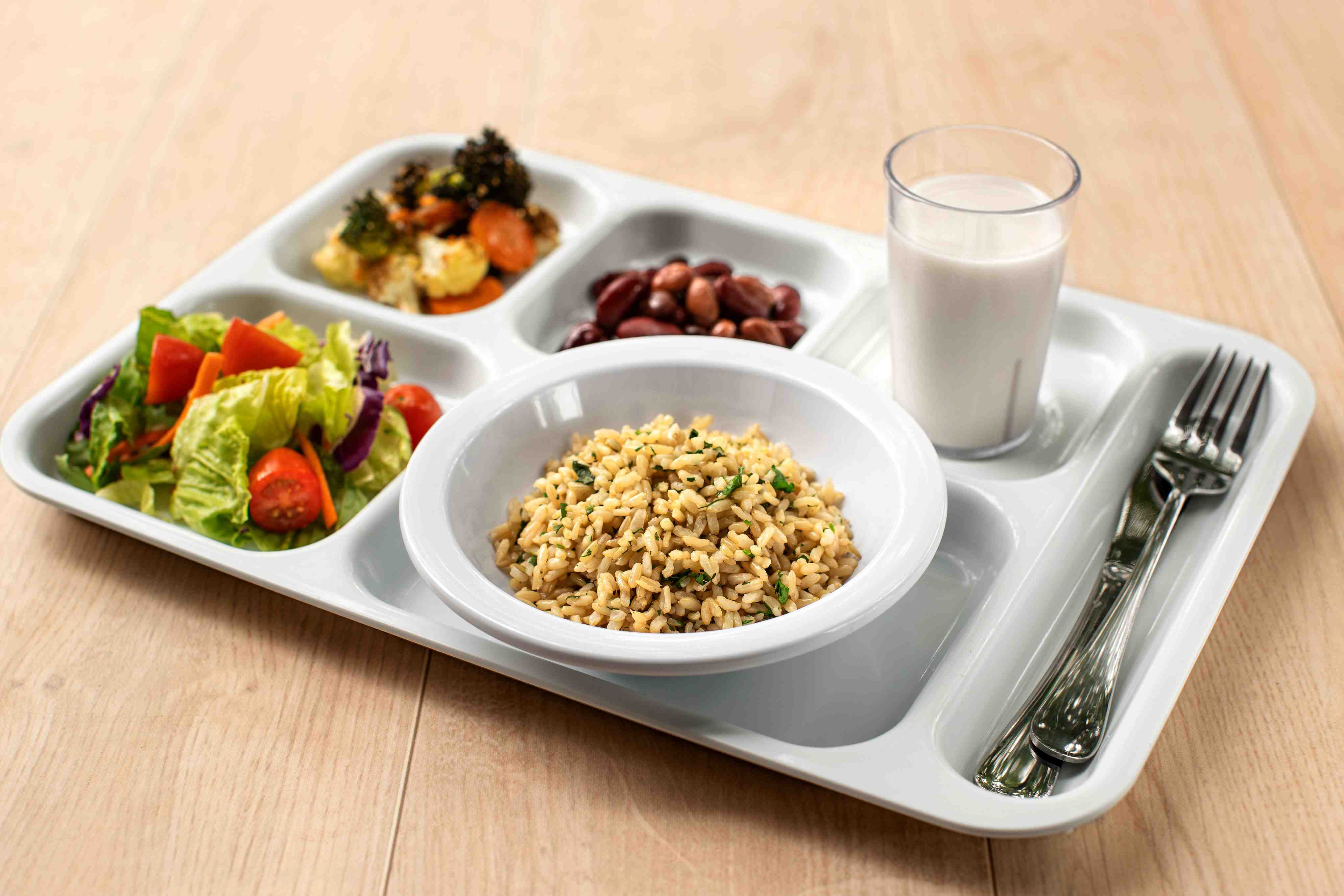 - Combine rice, water, and oil in a 4” full-size hotel pan (ratio = 1 part brown rice to 2 parts water).