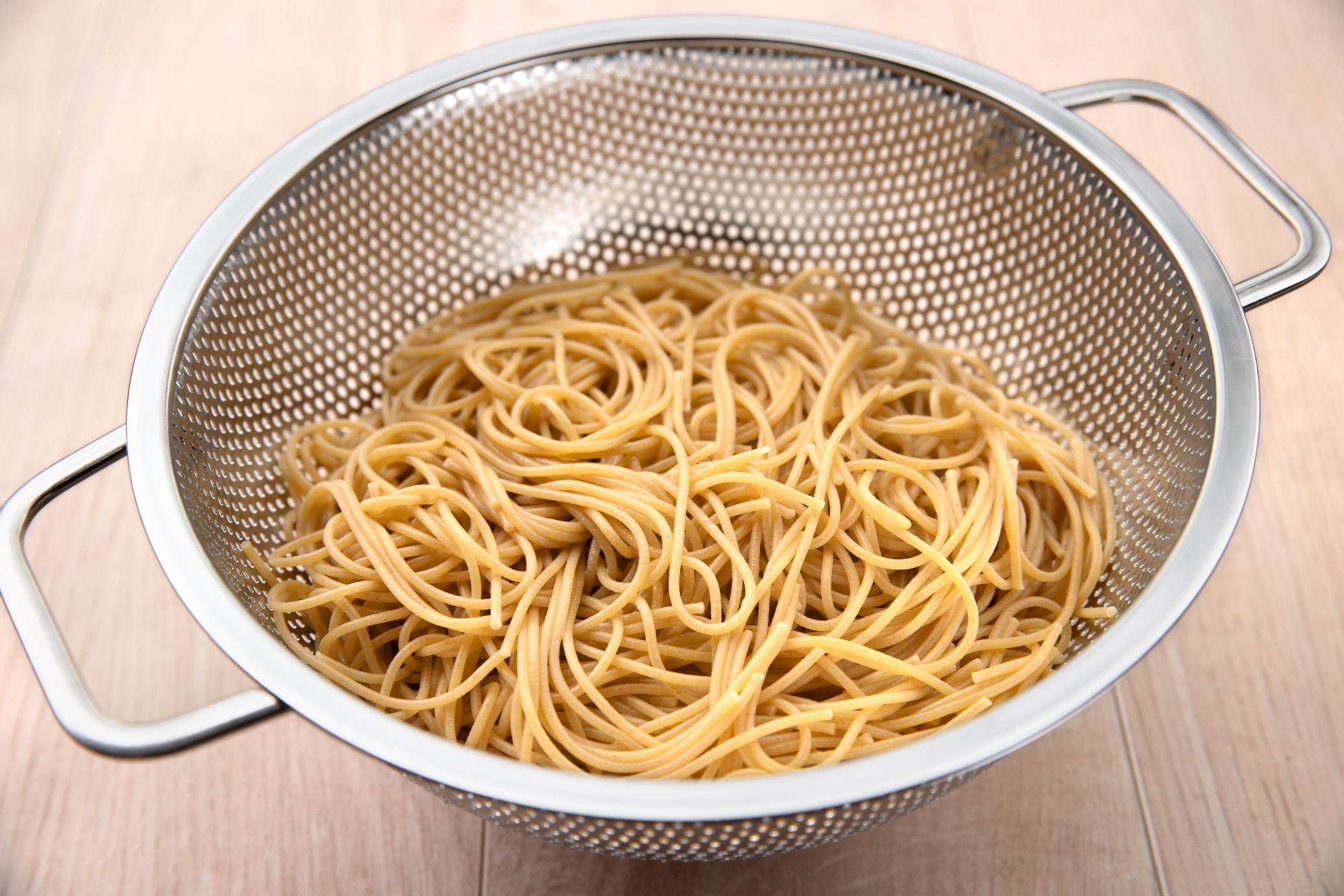 6. Add just enough oil to coat the pasta and toss in the colander.