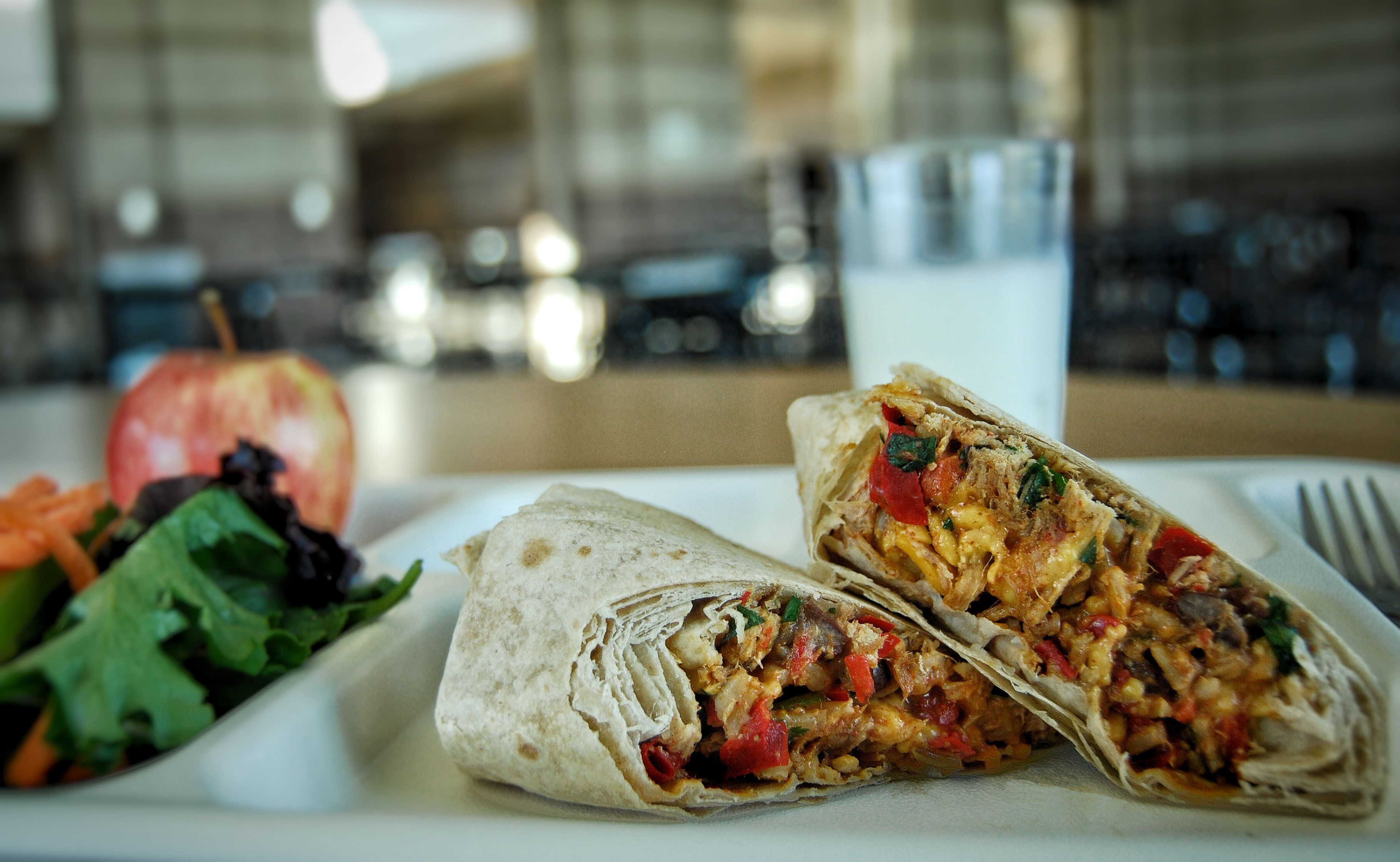 14. Using a #8 disher, place one scoop onto a 9-inch whole wheat tortilla and roll into a burrito.