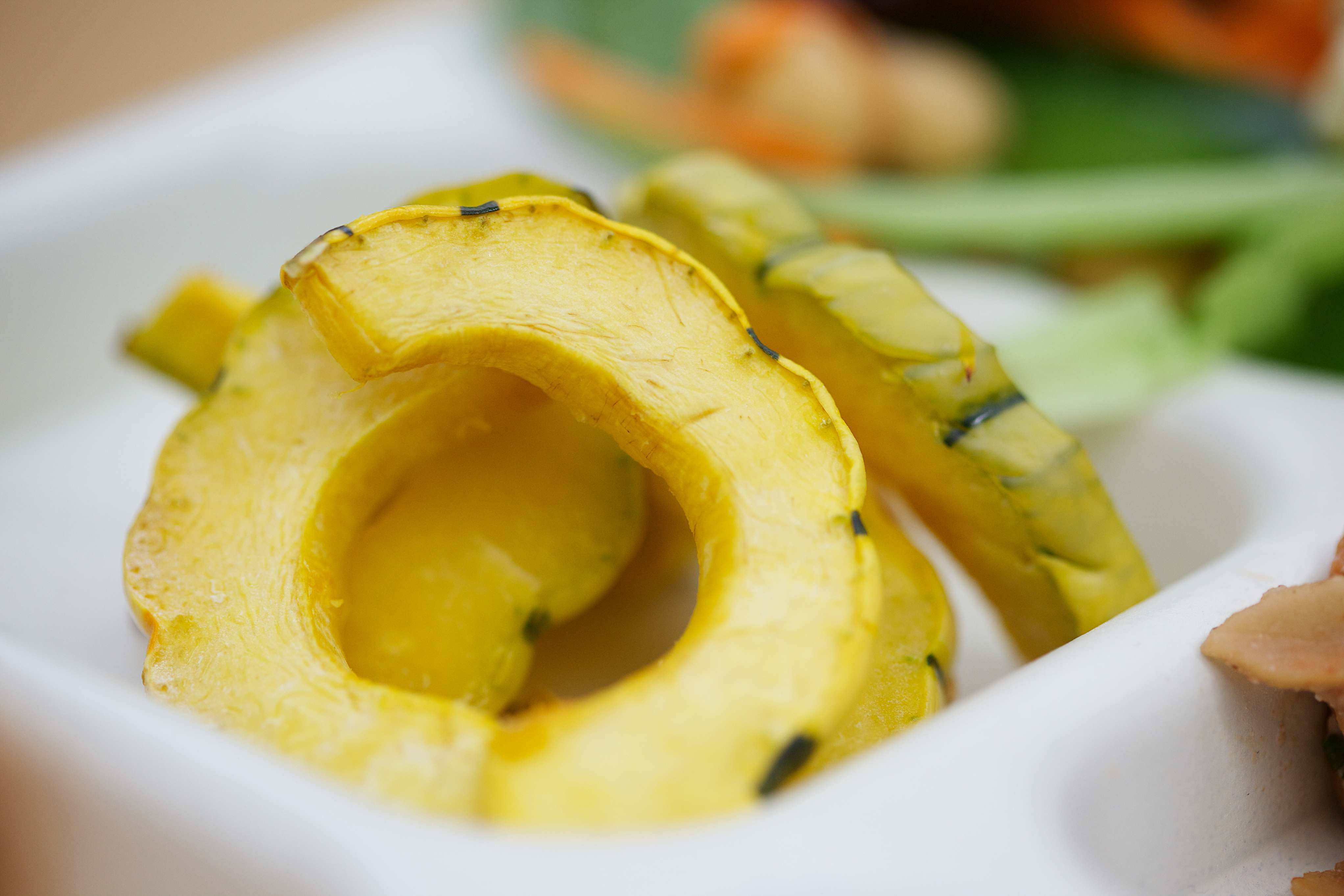 8. Before service, heat squash at 350°F for about 20 minutes, until the internal temperature reaches 165°F.