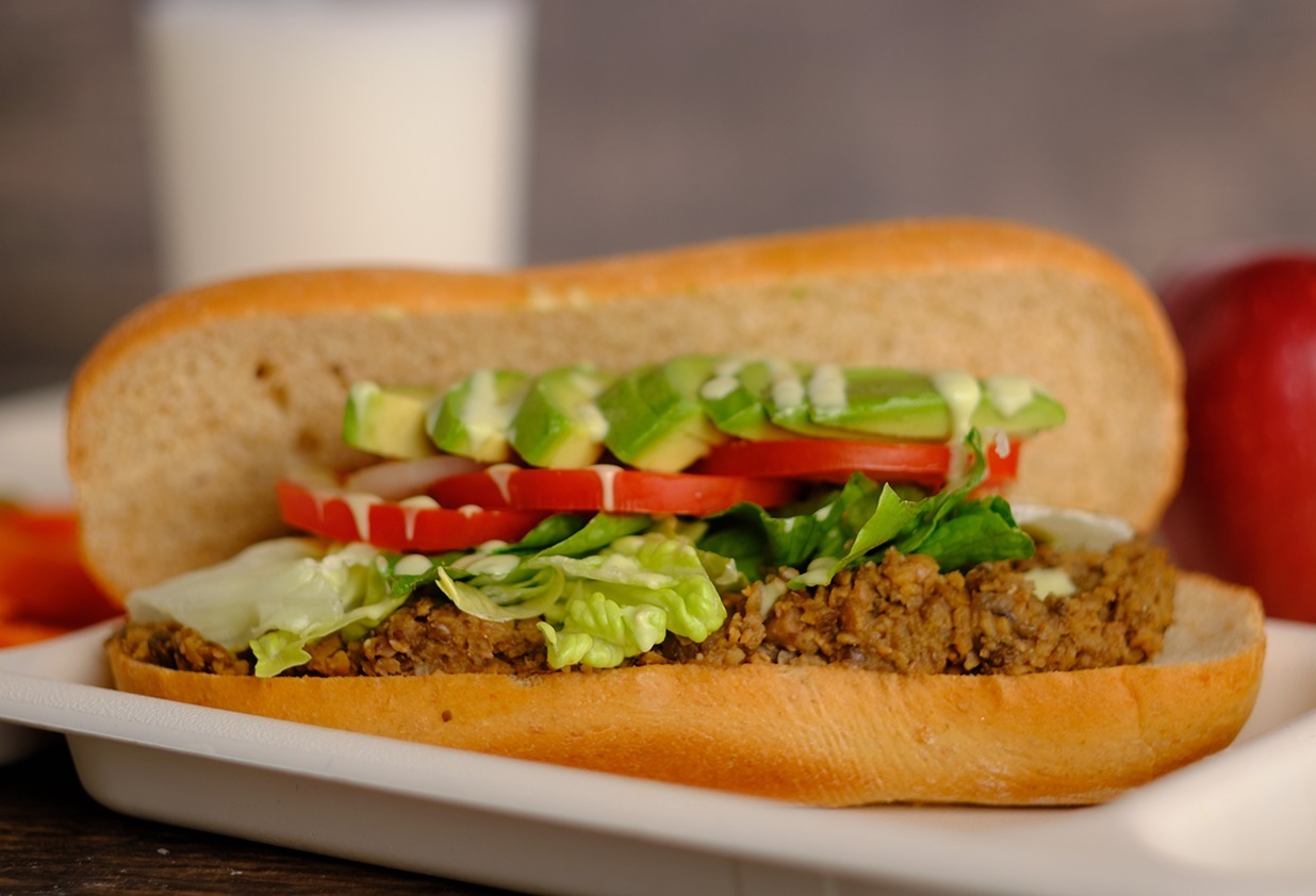 a. Spread #8 scoop (½ cup) lentil–mushroom mixture on one side of the sub roll.
