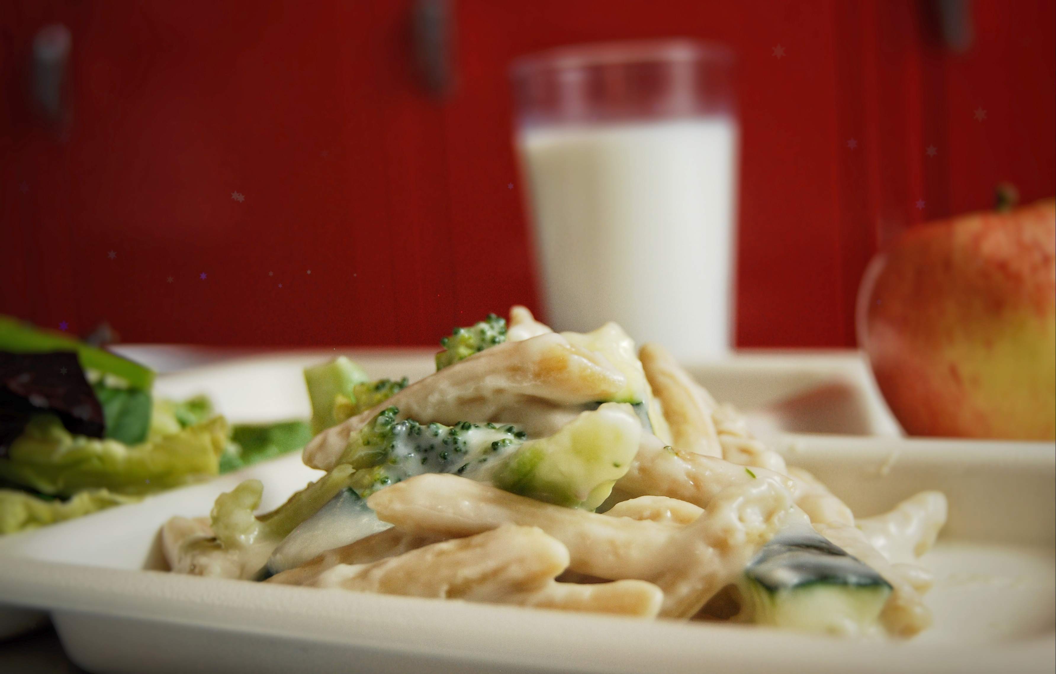 Add 3 lb of pasta and 1 gallon of béchamel per hotel pan and mix.